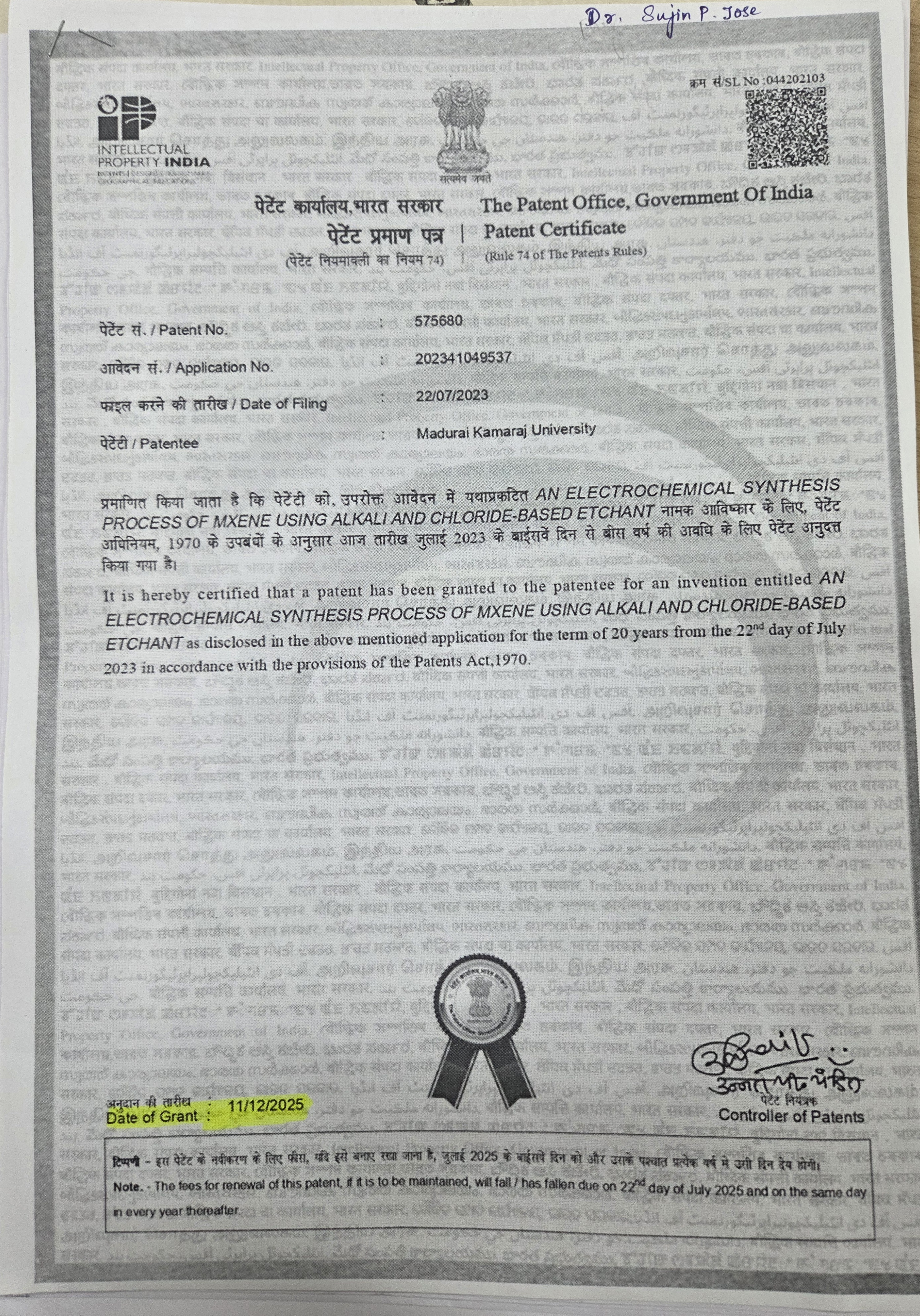Dr. Sujin. P. Jose